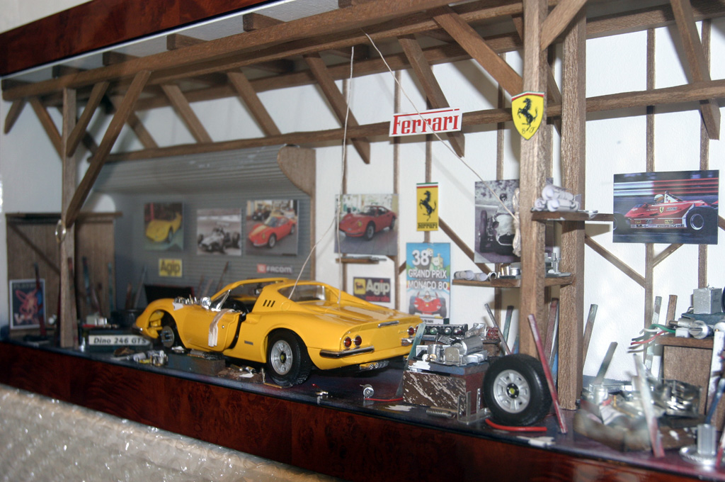 横幅70センチの大型オブジェに、フェラーリが誇る名車「フェラーリ512BB」が一台収納された非常に贅沢な作品です。